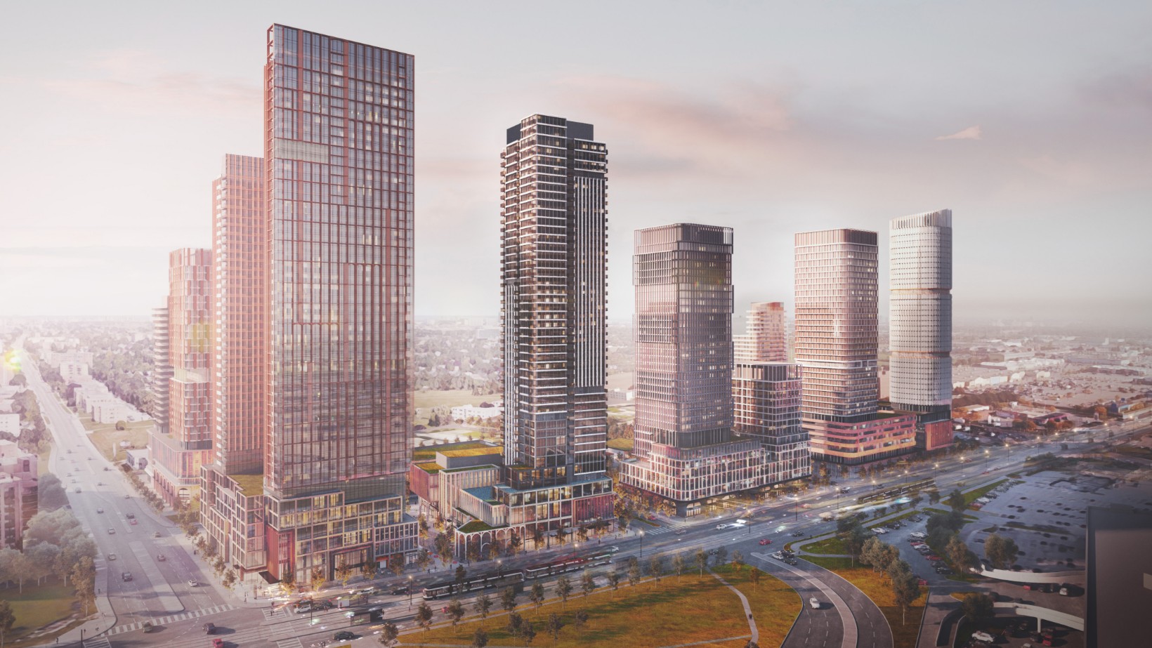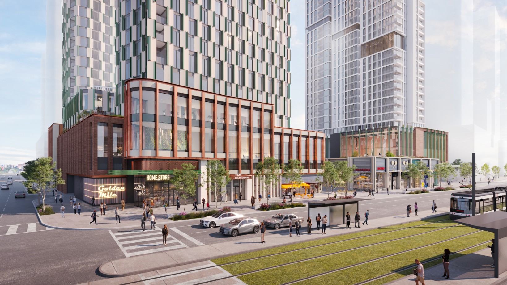 Une communauté dynamique à usage mixte à l’entrée du Golden Mile sur le nouveau TLR d’Eglinton Crosstown, comprenant des commerces, des logements et des bureaux dans divers types de bâtiments, ainsi qu’un nouveau parc public.